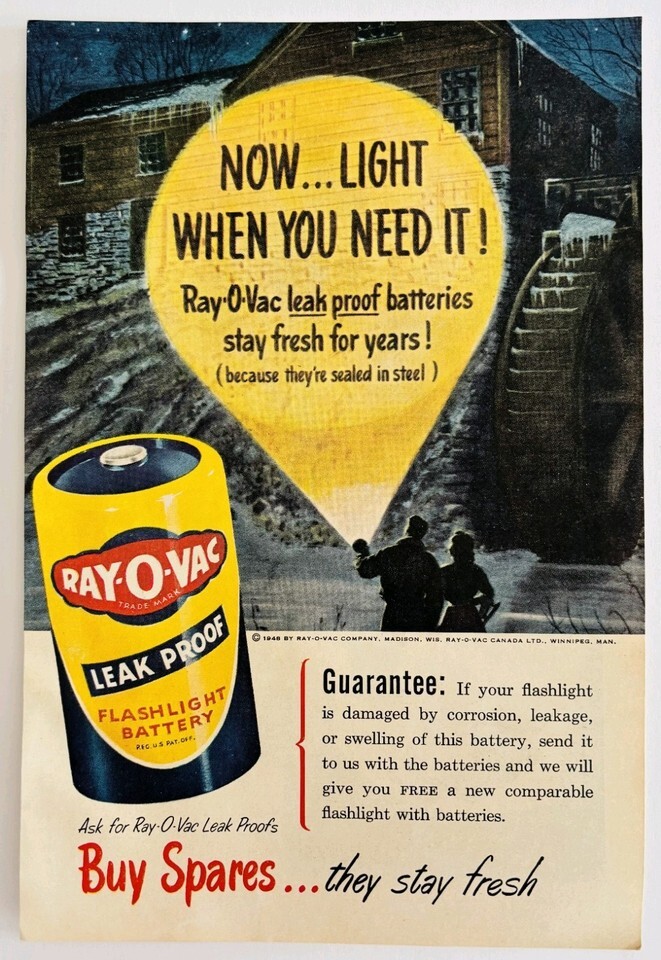 - 1949 Ray-O-Vac Flashlight Battery Advertisement Vintage Electronics Supply E8L
