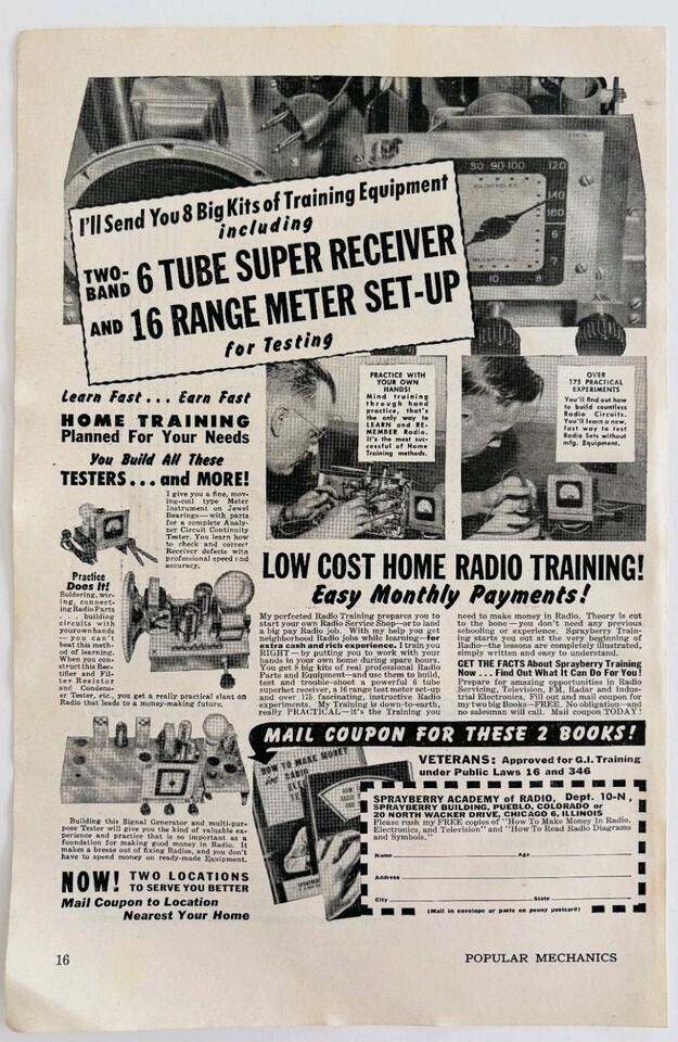 - 1949 Sprayberry Academy Radio Tech Training Advertisement Vintage Electronic E8L
