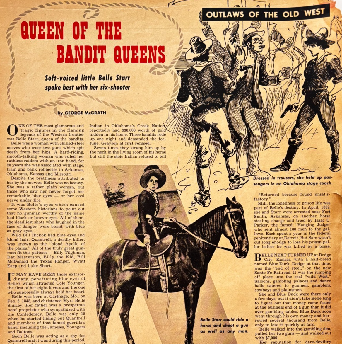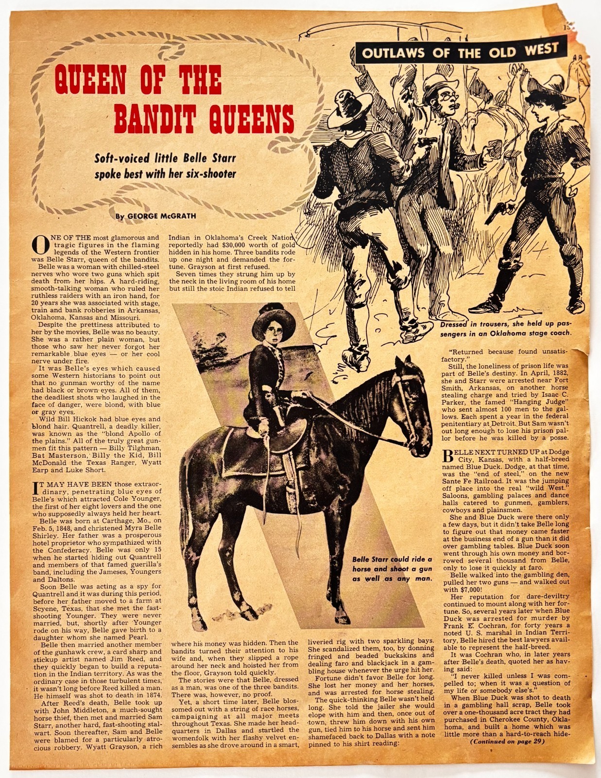 - 1950 Belle Starr Queen Of The Bandits Article Old West Outlaws Oklahoma DWXX5