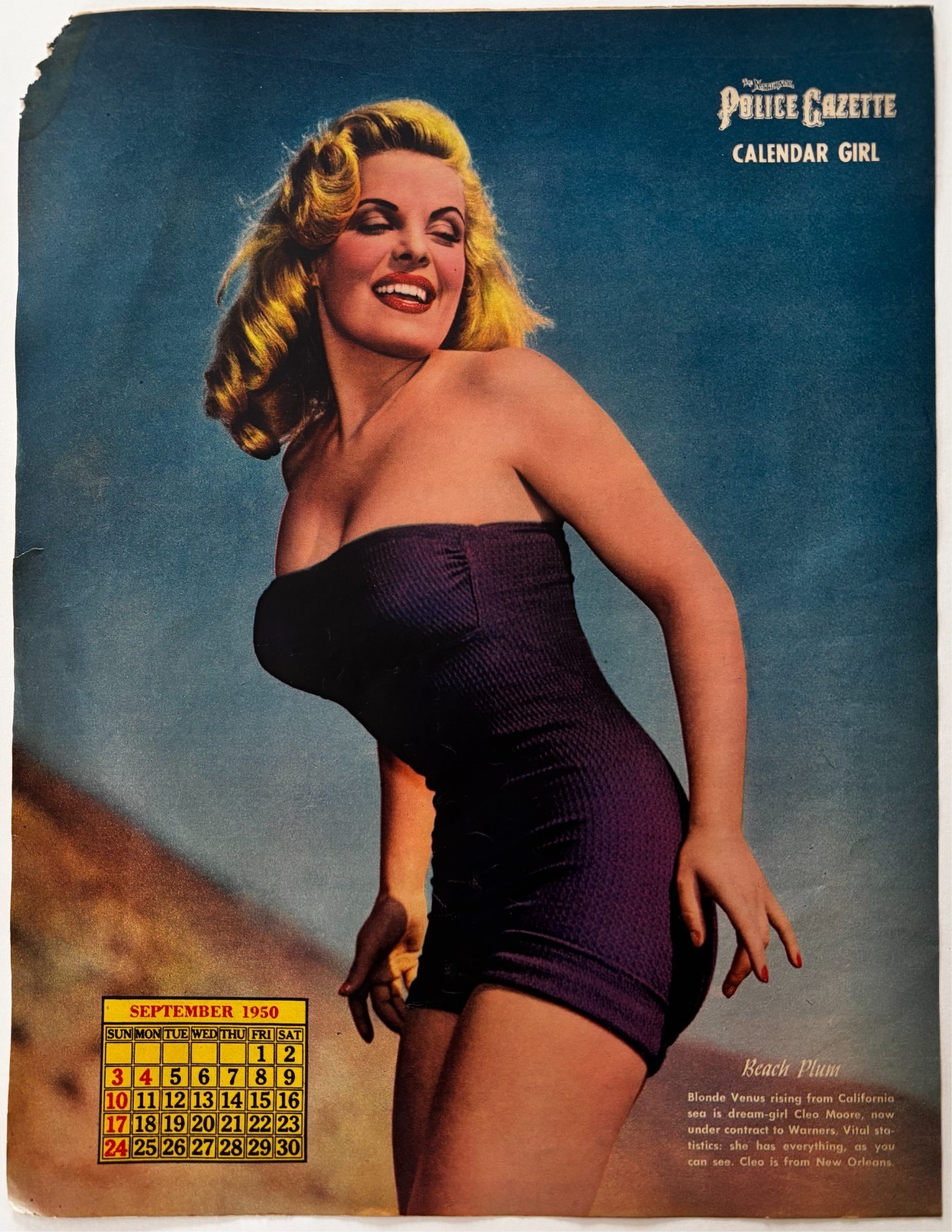 - 1950 Cleo Moore Sexy Date Of The Month Pin-Up Girl Police Gazette Print DWXX4