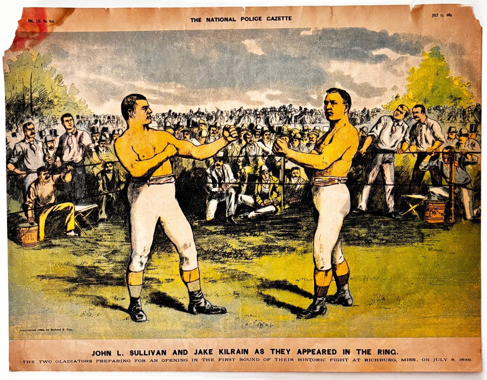 - 1950 Jake Kilrain John Sullivan Boxing Police Gazette Litho Print Sports DWXX4
