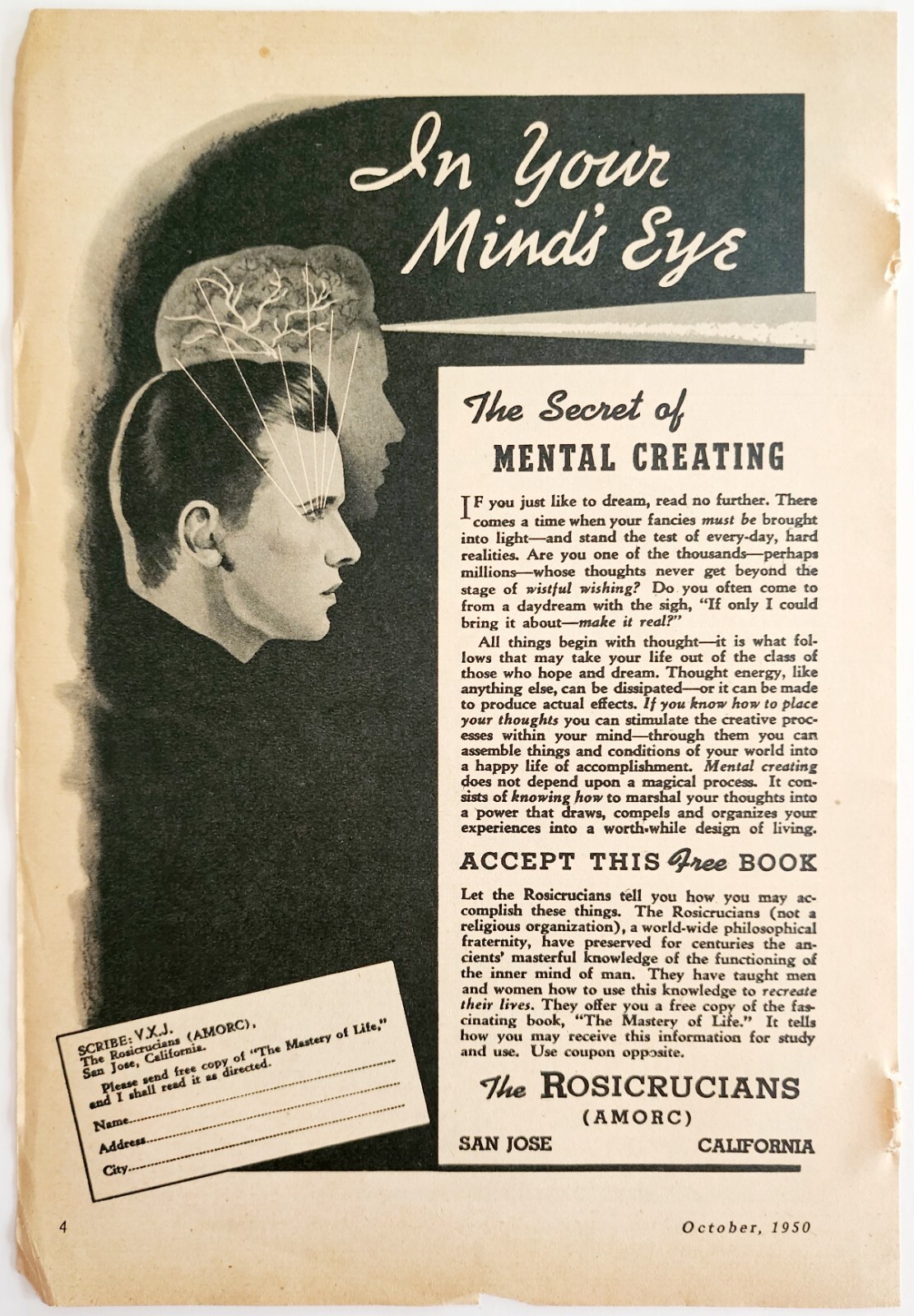 - 1950 Rosicrucians Fraternal Secret Order Advertisement Vintage AMORC DWF25