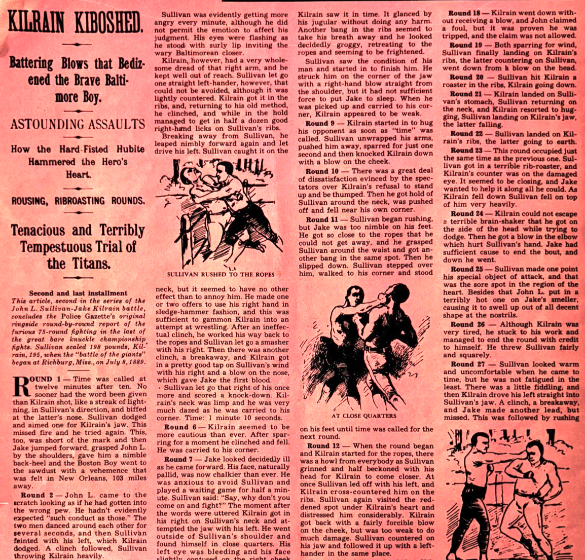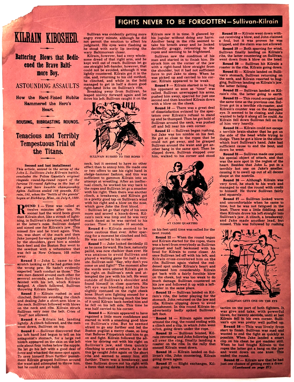 - 1950 Sullivan Kilrain Boxing Match Rounds Article Police Gazette Sports DWXX5