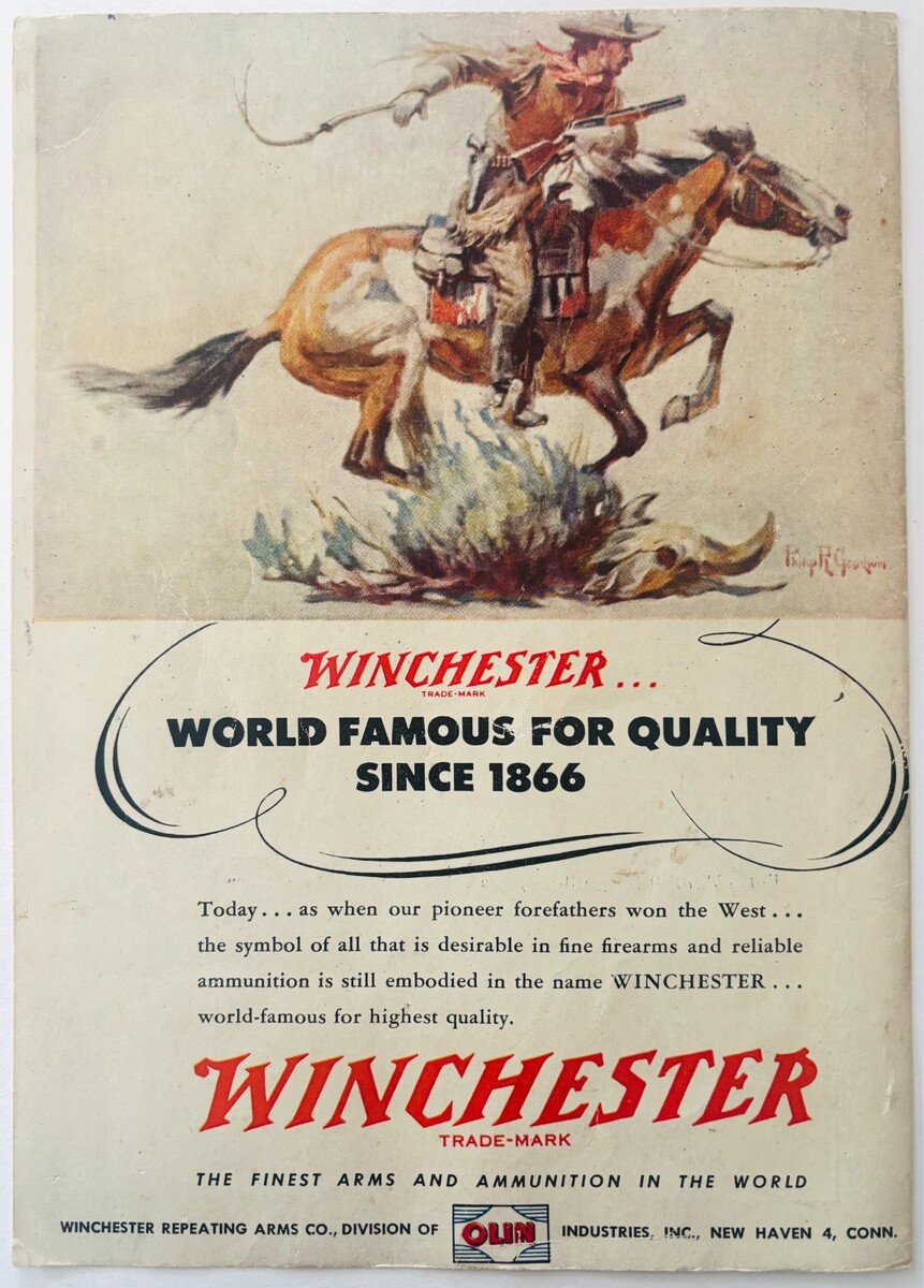 1950 Winchester Firearms Advertisement Vintage Guns Goodwin Cowboy Art DWV11C