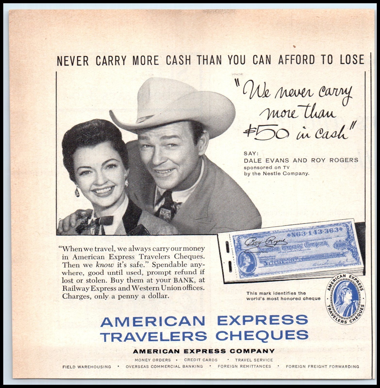 - 1950s American Express Travelers Cheques PRINT AD Dale Evans & Roy Rogers BX2