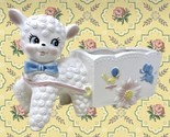 1950s Ceramic Lamb & Cart Planter Pot Kitsch Bird Rattle Flower Baby Inarco 8”W