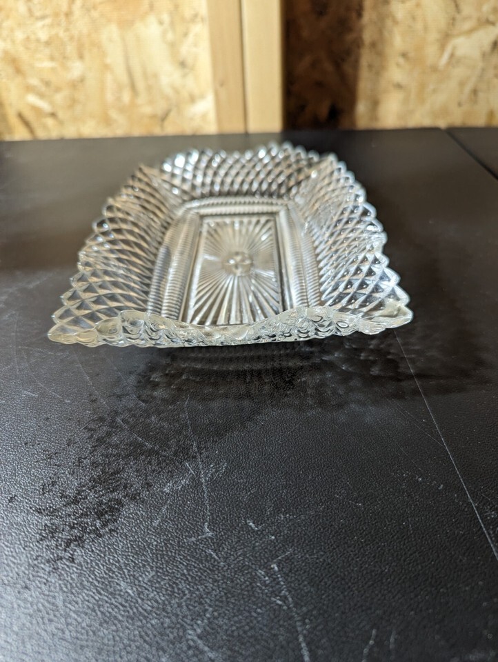 1950s Federal Glass Vintage Diamond Point Ruffled Wave Edge Serving Dish