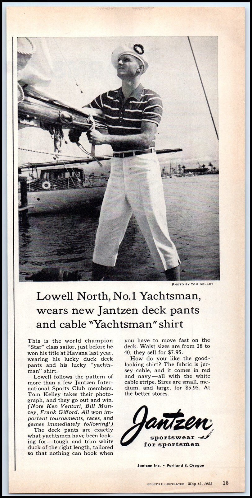 - 1950s Jantzen Sportswear PRINT AD Lowell North No. 1 Yachtsman "Cable Shirt" BX3
