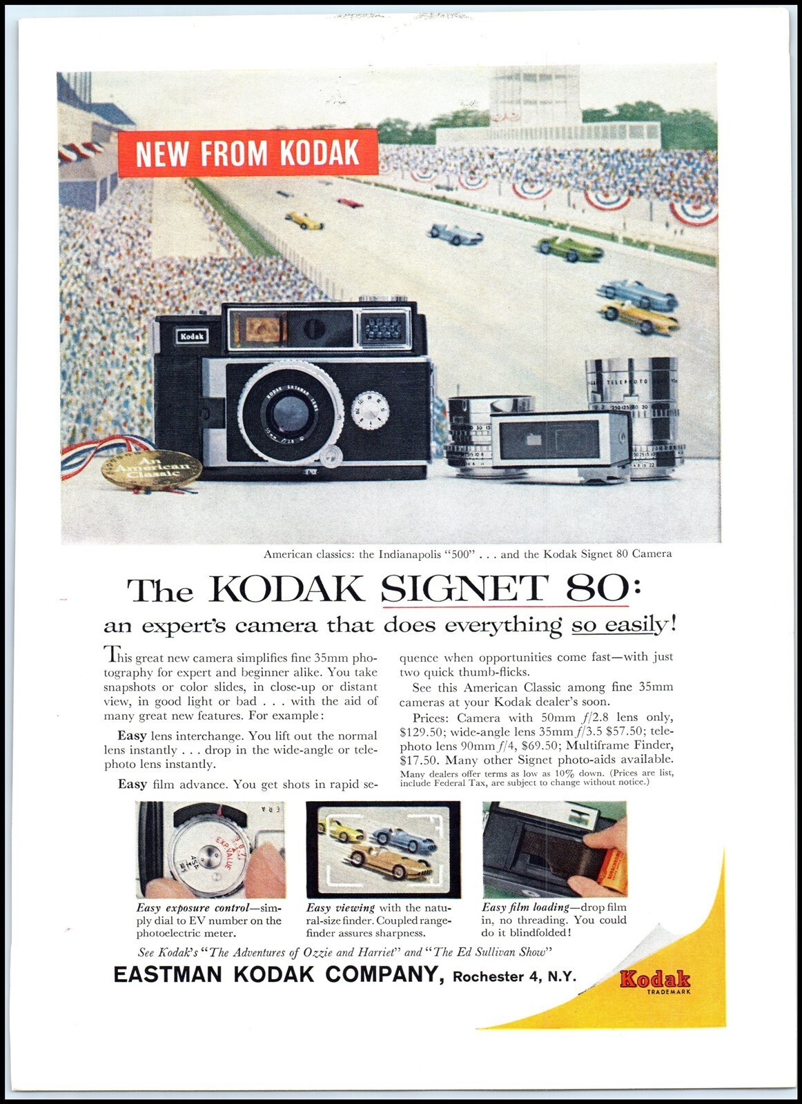- 1950s Kodak Signet 80 Camera PRINT AD Indianapolis 500 Car Race BX4