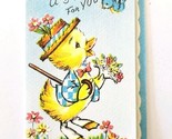 1950s Mini Gift Greeting Card Duckling Bluebird Easter Holiday Spring Cute E88G