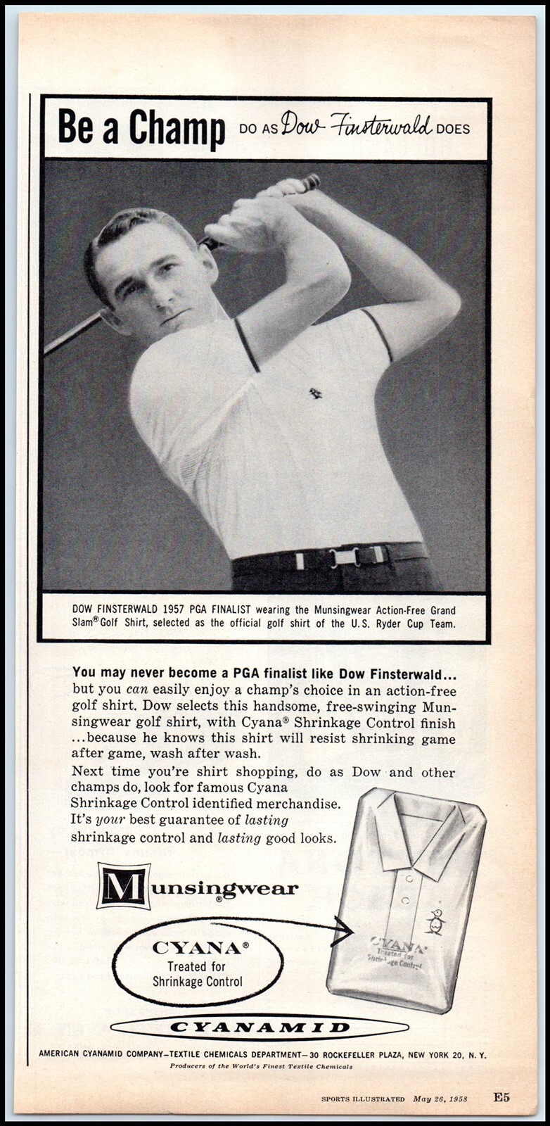 - 1950s Munsingwear Golf Shirt with Cyana PRINT AD Pro Golfer Dow Finsterwald BX2