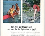 - 1950s Pan Am PRINT AD Pan Am's Jet Clippers Cut Pacific Flight Time In Half BX2