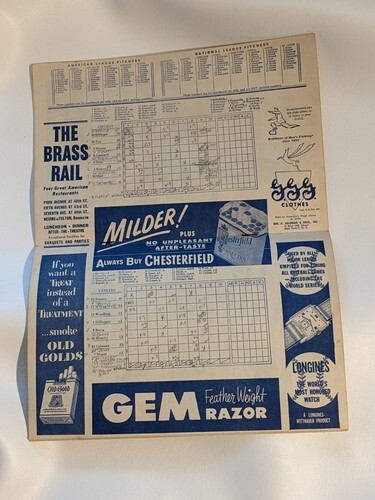 - 1951 Chicago Cubs vs New York Yankees Stadium Program Scorecard Scored MLB