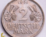 - 1951-F Germany Deutsche 2 Mark 1 Year Issue (XF) Extra Fine Condition