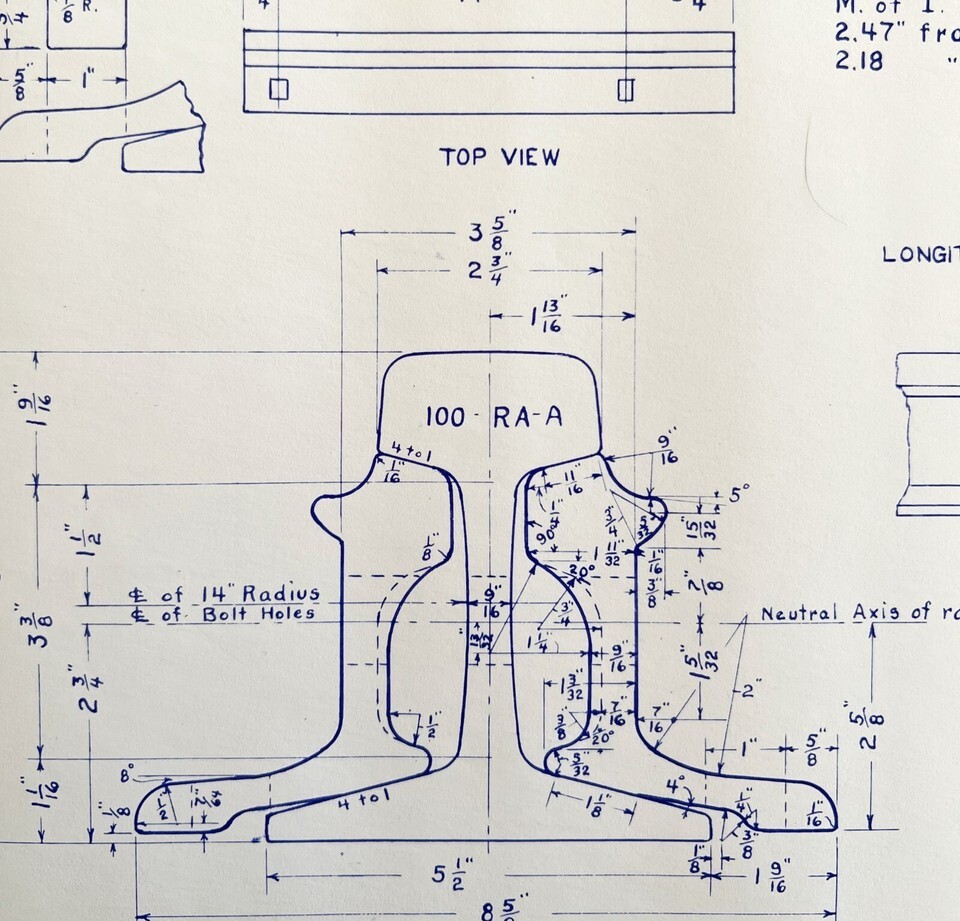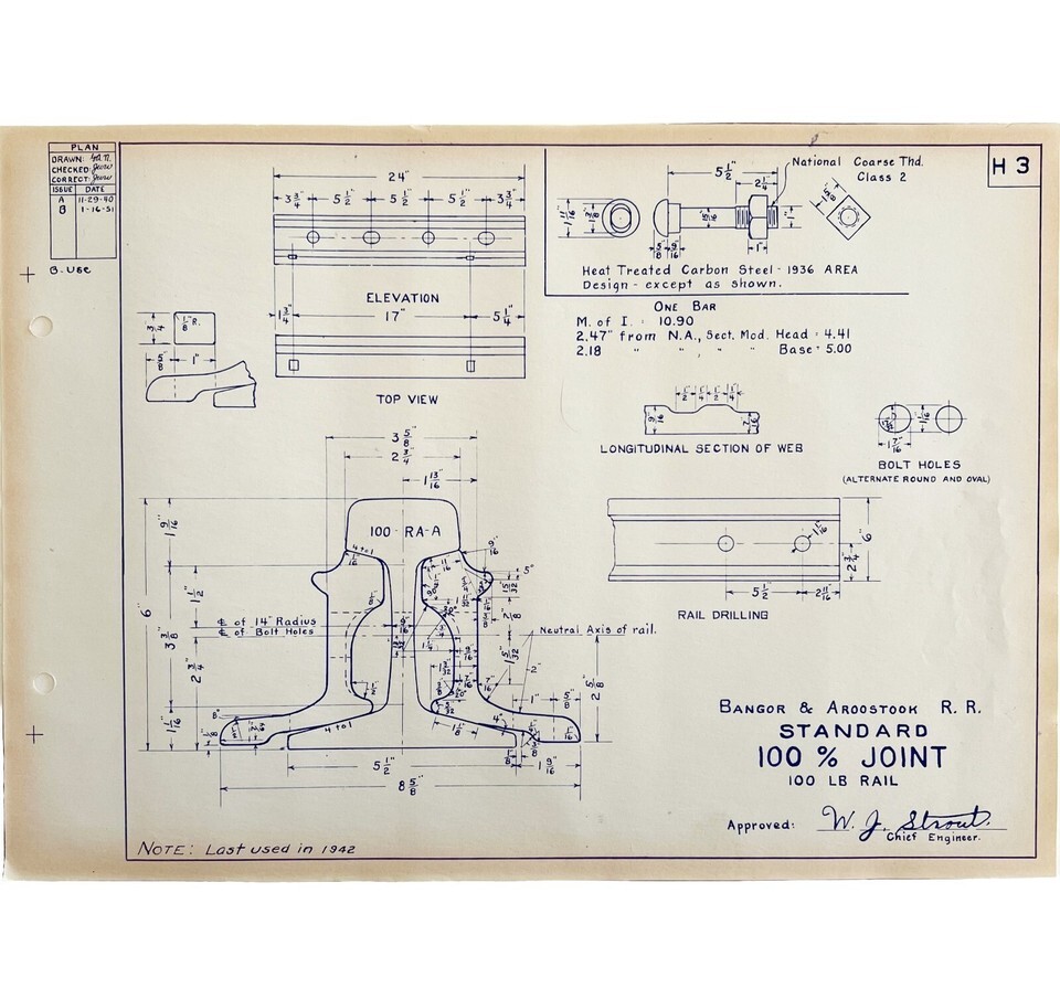 - 1951 Railroad Bangor Aroostook Standard 100% Joint Rail Blueprint H3 DWDD14