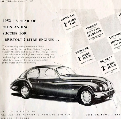1952 Bristol Aeroplane Co 2 Litre Saloon Car Advertisement Automobilia DWLL6