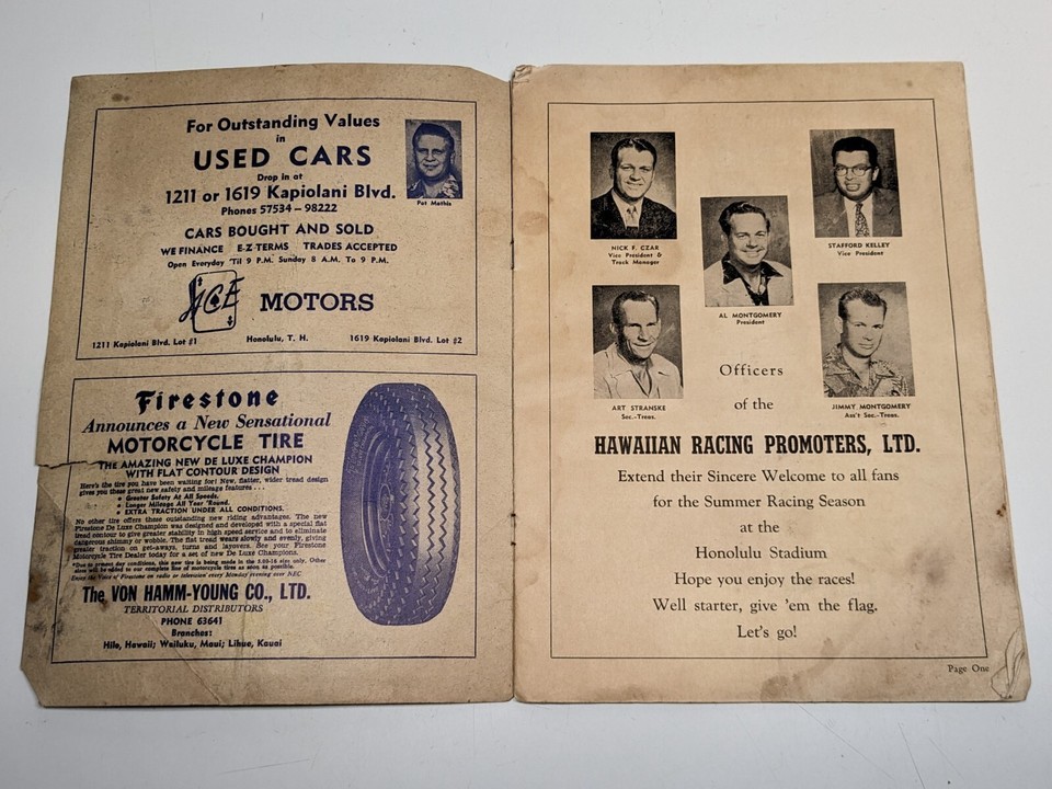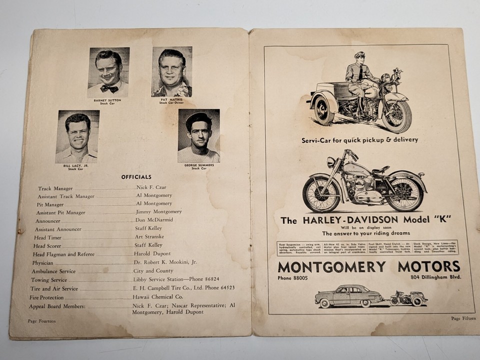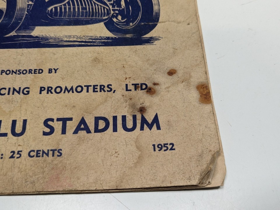 - 1952 Honolulu Stadium Speed Racing Stock Car Midget Motorcycle Race Program Summ