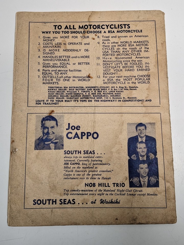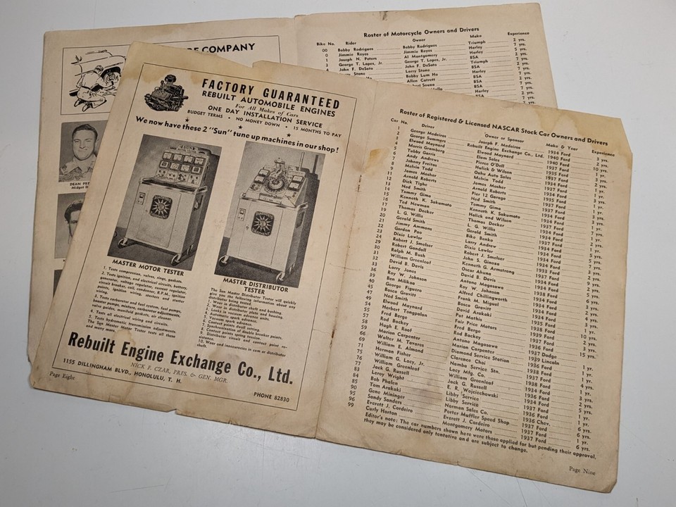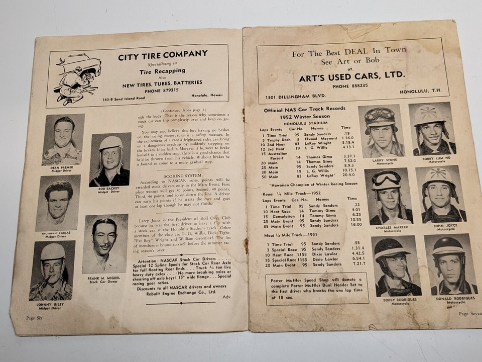 1952 Honolulu Stadium Speed Racing Stock Car Midget Motorcycle Race Program Summ