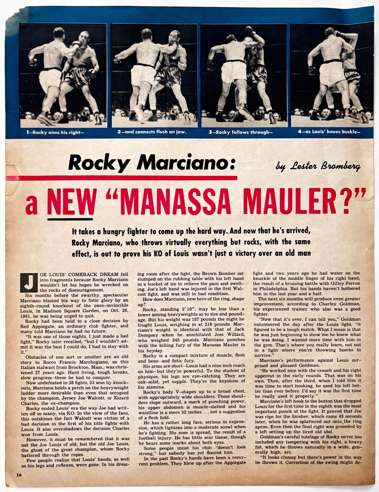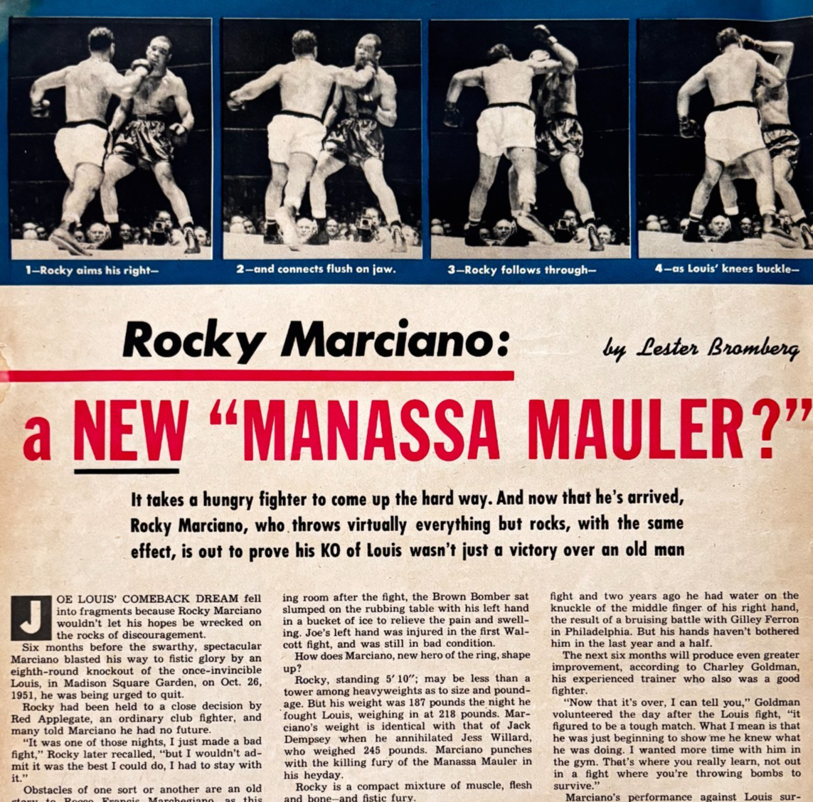 1952 Rocky Mariano Joe Louis Boxing Match Article Police Gazette Sports DWXX5