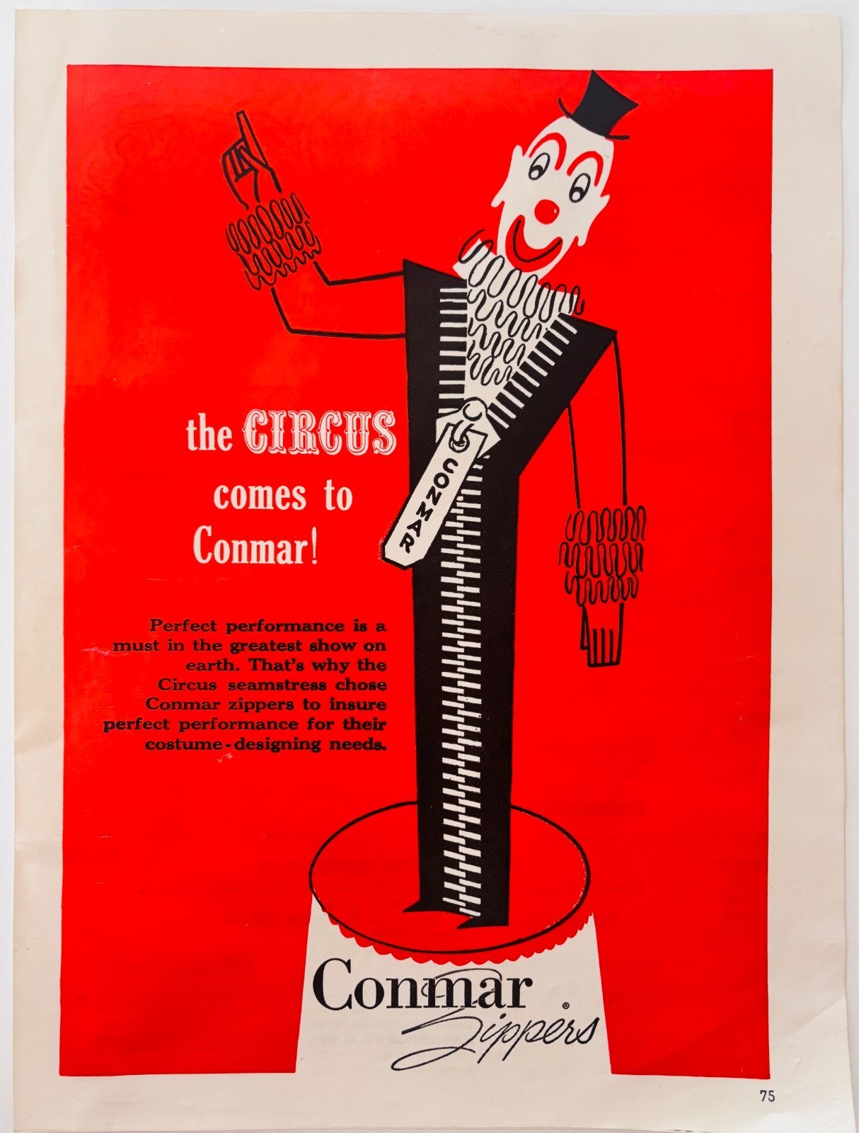 - 1953 Conmar Zippers Advertisement Ringling Barnum Bailey Circus Clown F15S