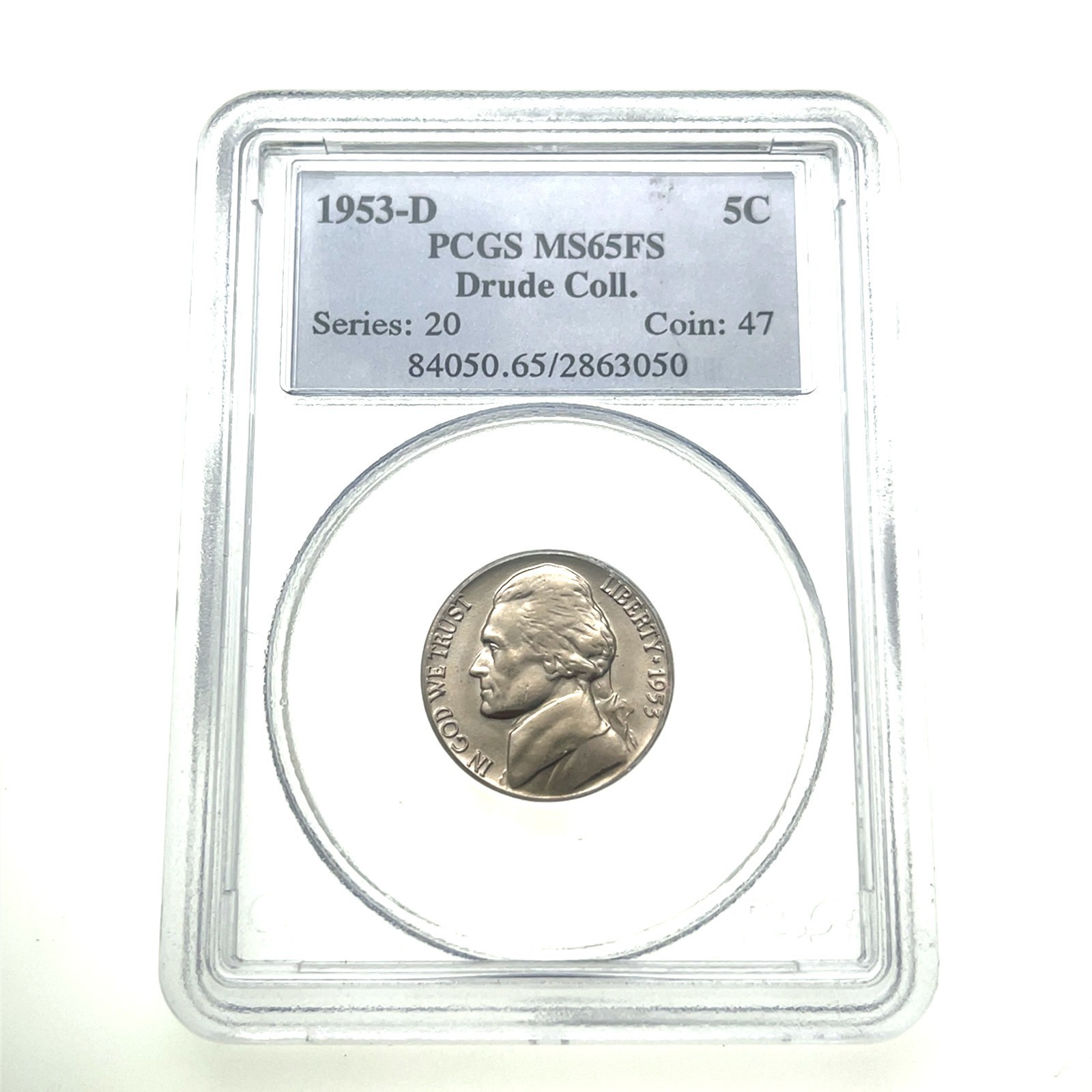 - 1953-D 5C Jefferson Nickel Graded by PCGS as MS65FS Full Steps Drude Colllection