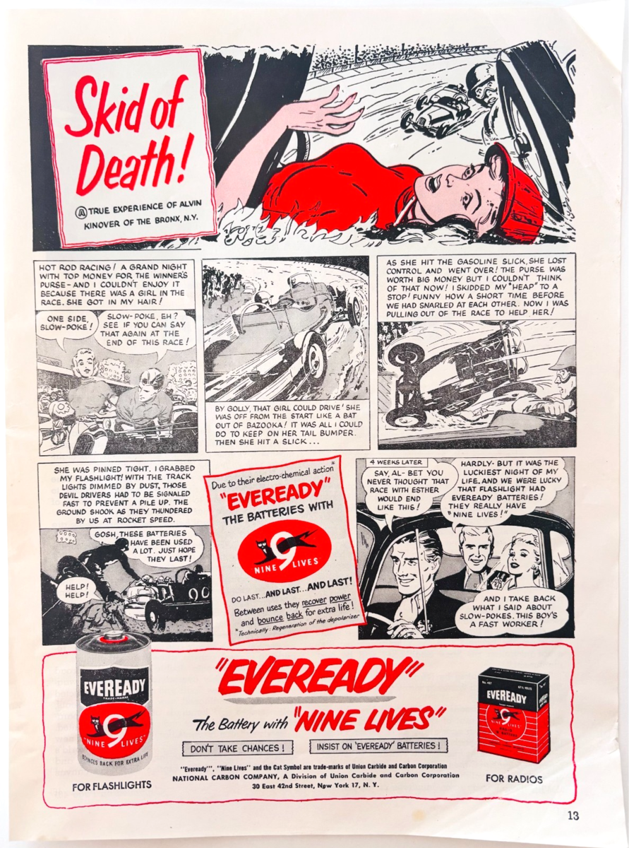 - 1953 Eveready Battery Advertisement Skid Of Death Comic Strip True Story F15S