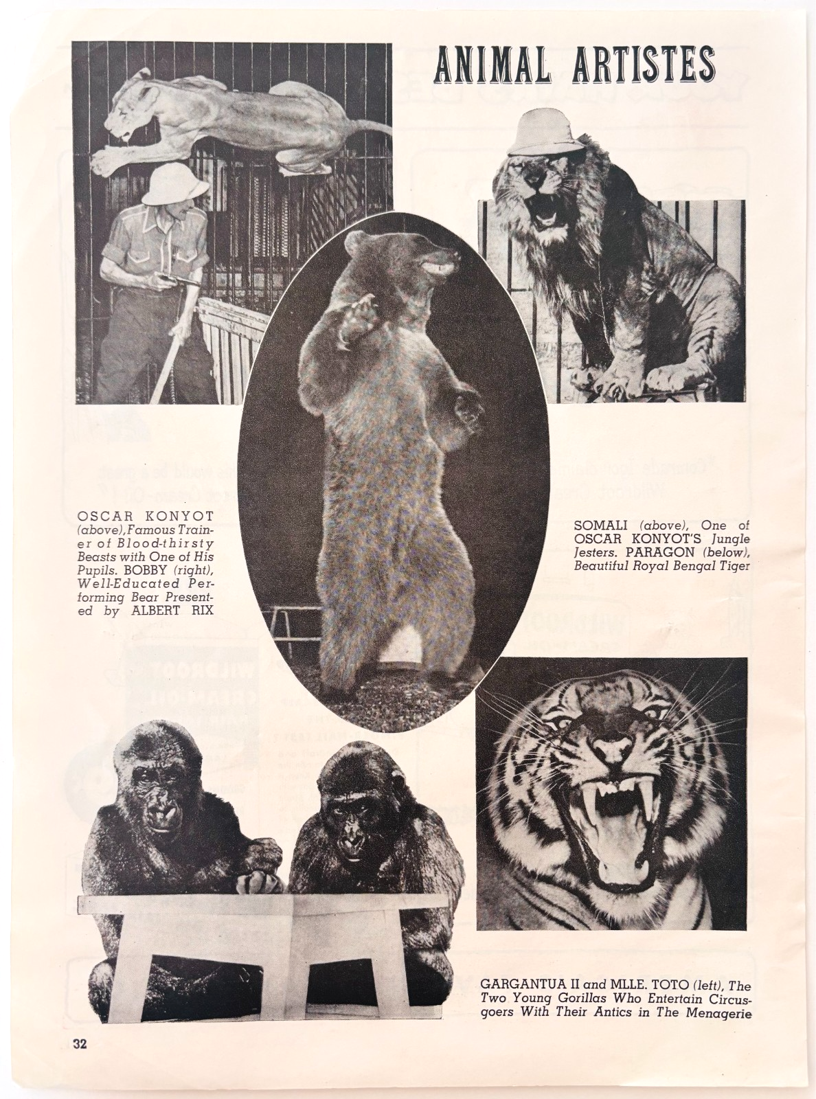 - 1953 Famous Circus Animal Attractions Gargantua Paragon Somali Toto F15S