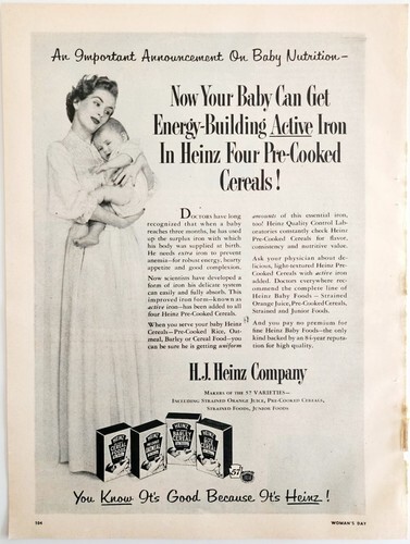 - 1953 Heinz Company Baby Infant Pre Cooked Cereals Advertisement Breakfast DWLL4