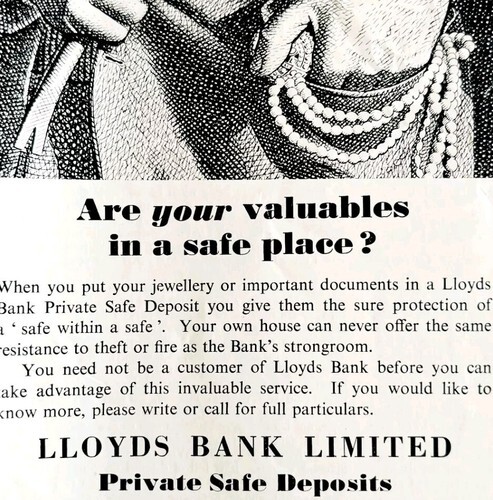 - 1953 Lloyd's Bank Limited Valuables Advertisement Money Sphere UK Import E90A
