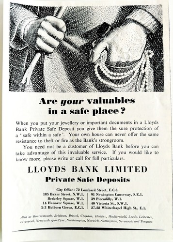 1953 Lloyd's Bank Limited Valuables Advertisement Money Sphere UK Import E90A