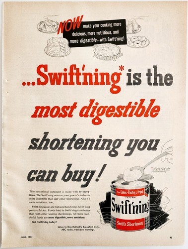 - 1953 Swift Shortening Swift'ning Lard Baker Advertisement Baking DWLL4
