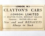 - 1954 Clayton's Cars Ltd Renault Dealership Advertisement Automobilia E89F5