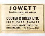 - 1954 Cooter & Green Eden Park Garage Mechanic Advertisement Automobilia E89F4