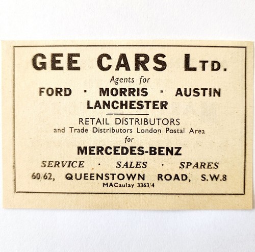 - 1954 Gee Cars Ltd Mercedes Benz Advertisement Import Automobilia E89F1
