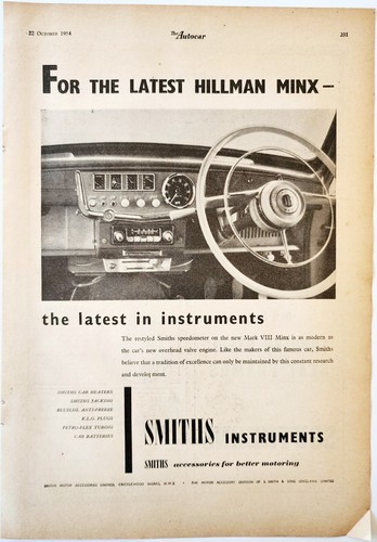 - 1954 Hillman Minx Smith Instruments Import Advertisement Automobilia DWPP11