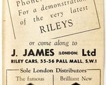 1954 J James Ltd London Riley Dealership Advertisement Automobilia E89G1