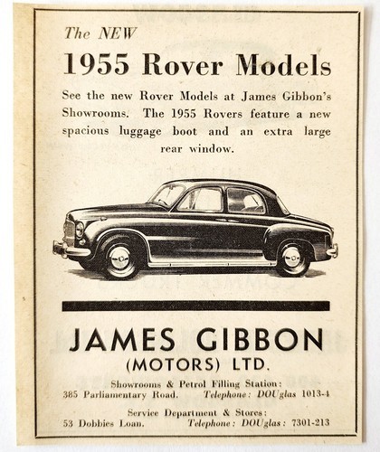- 1954 James Gibbon Rover Dealership Scotland Advertisement Automobilia E89G3