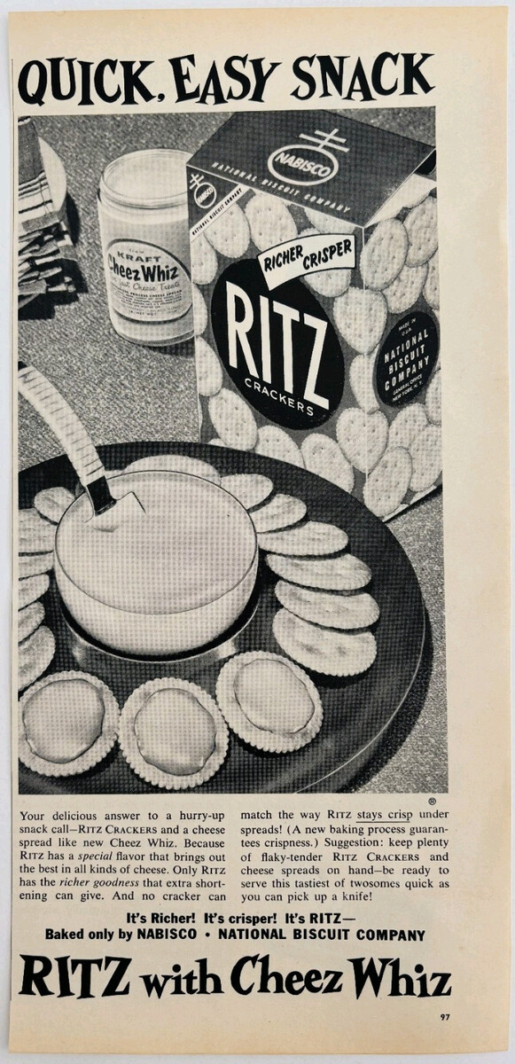 - 1954 Nabisco Ritz Crackers Kraft Cheez Whiz Advertisement Snack Foods DWQQ9