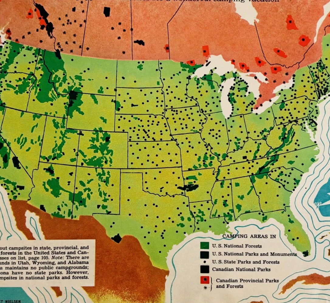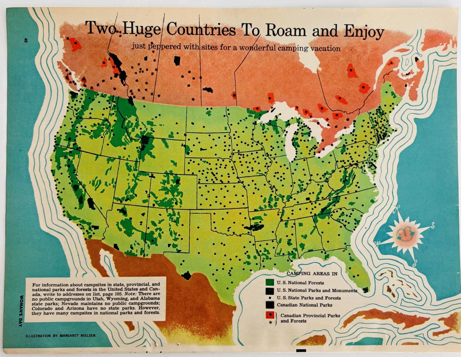 - 1954 National Parks And Forests Camping Vacation Map Woman's Day Page DWQQ9