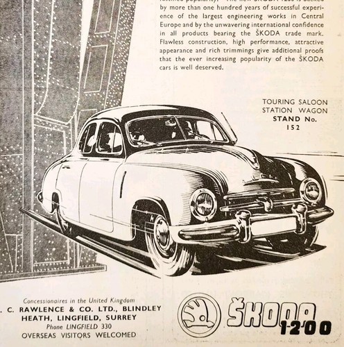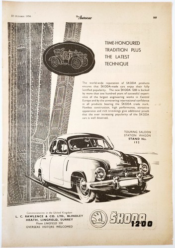 - 1954 Skoda Saloon Station Wagon Import Advertisement Autocar Automobilia DWPP12B
