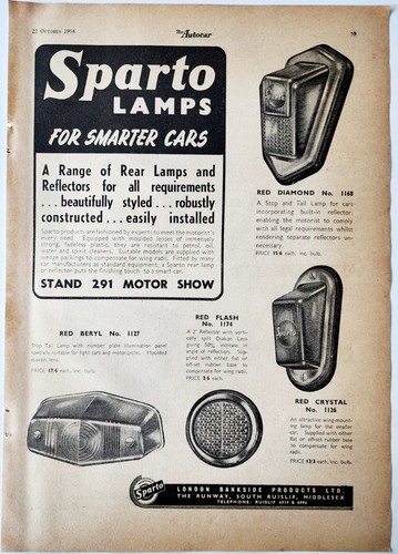 - 1954 Sparto Car Lamps Earls Court Advertisement Motor Show Automobilia DWPP10