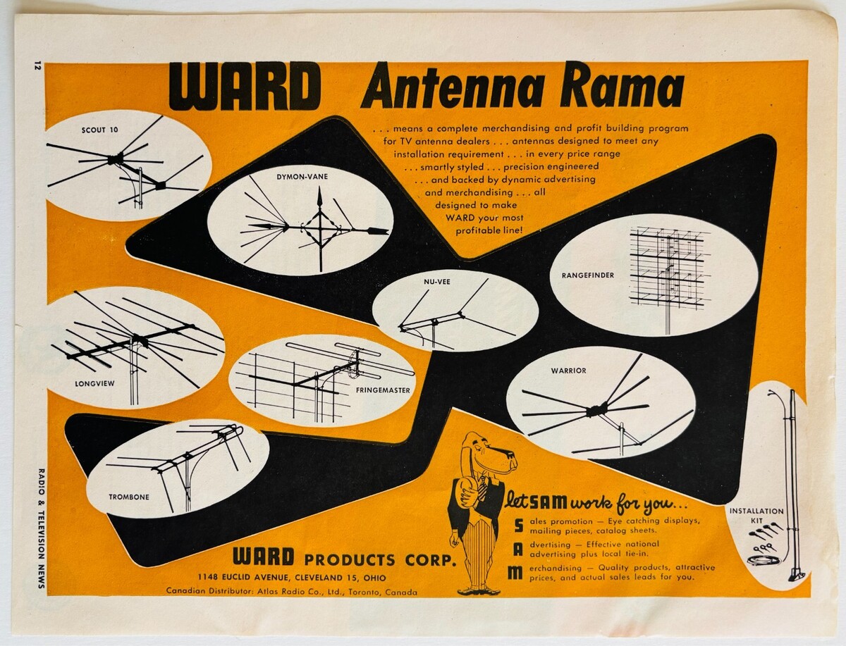 - 1954 Ward Television Antenna Advertisement Vintage Electronics Sam The Dog DWP9A