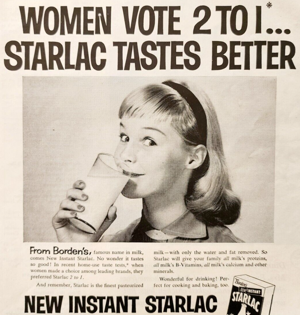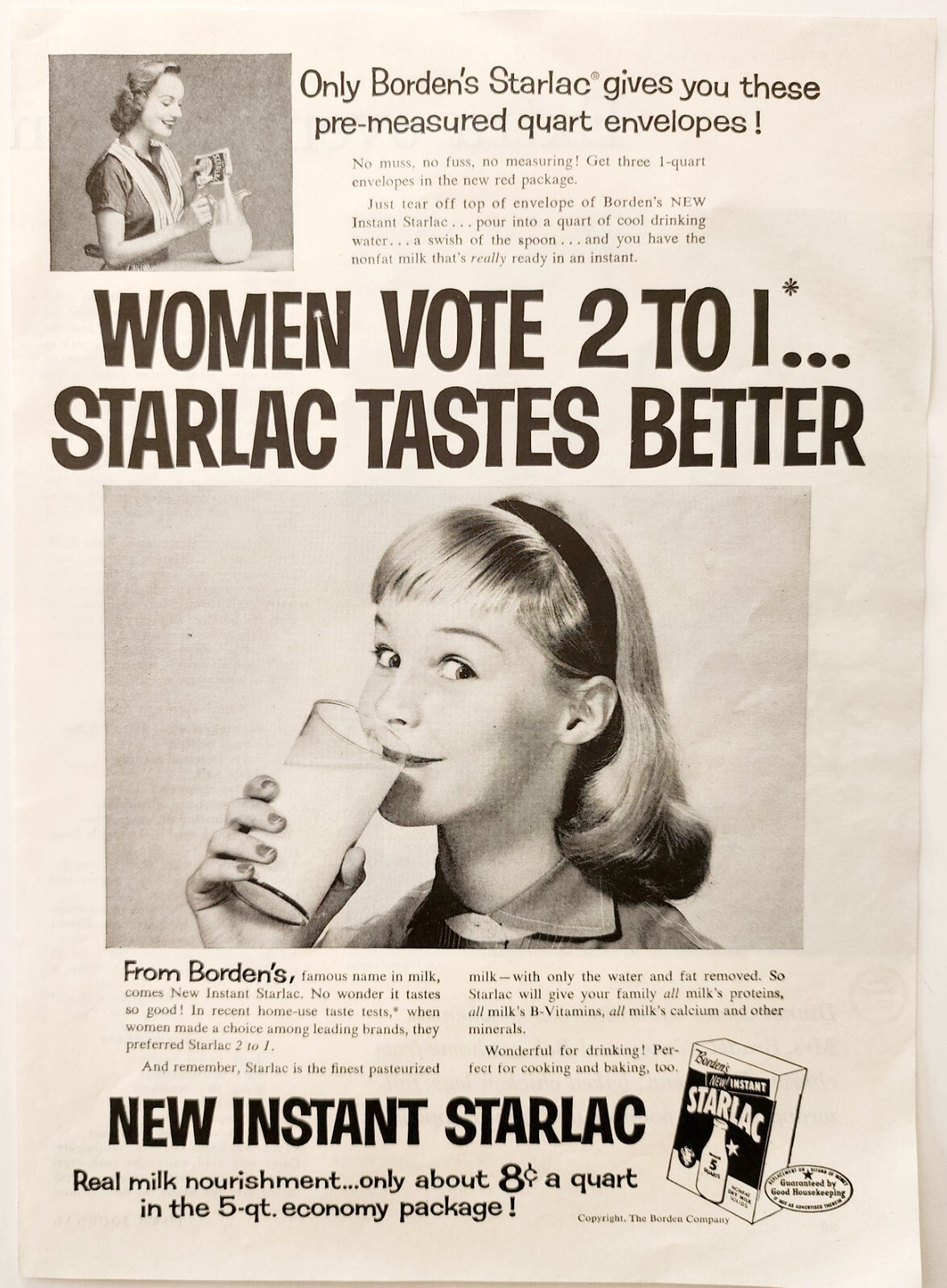 - 1955 Borden Dairy Instant Starlac Advertisement Vintage Dry Milk Mix DWF12