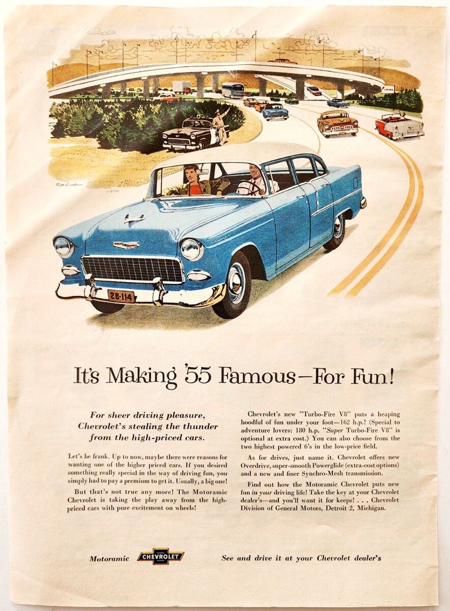 - 1955 Chevrolet Motoramic Car Turbo Fire Advertisement Vintage Automobilia DWF12