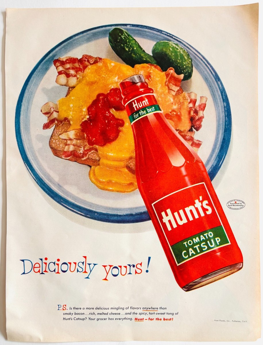 - 1955 Hunt's Tomato Ketchup Advertisement Vintage Catsup Condiments DWYY6