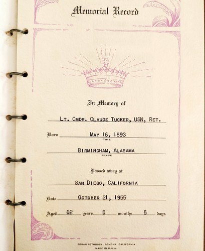 - 1955 Lieutenant Commander Claude Tucker US Navy Memorial Record Prayer Book E86