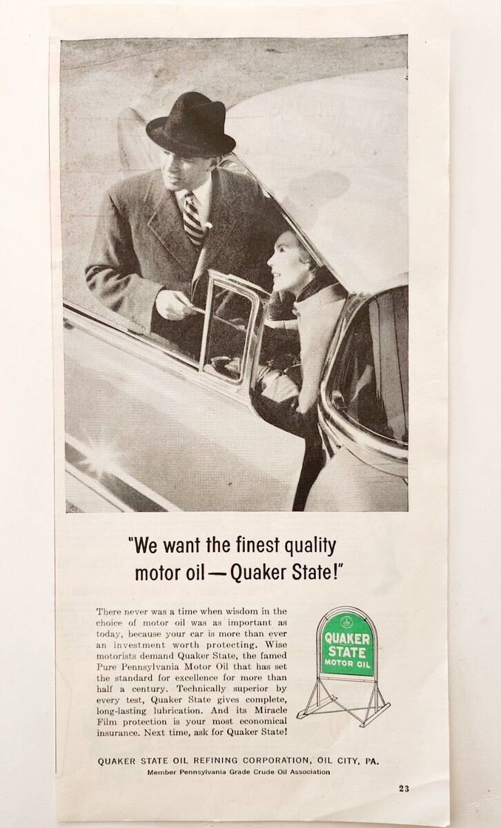 - 1955 Quaker State Motor Oil Advertisement Vintage Automobilia Pennsylvania DWF12