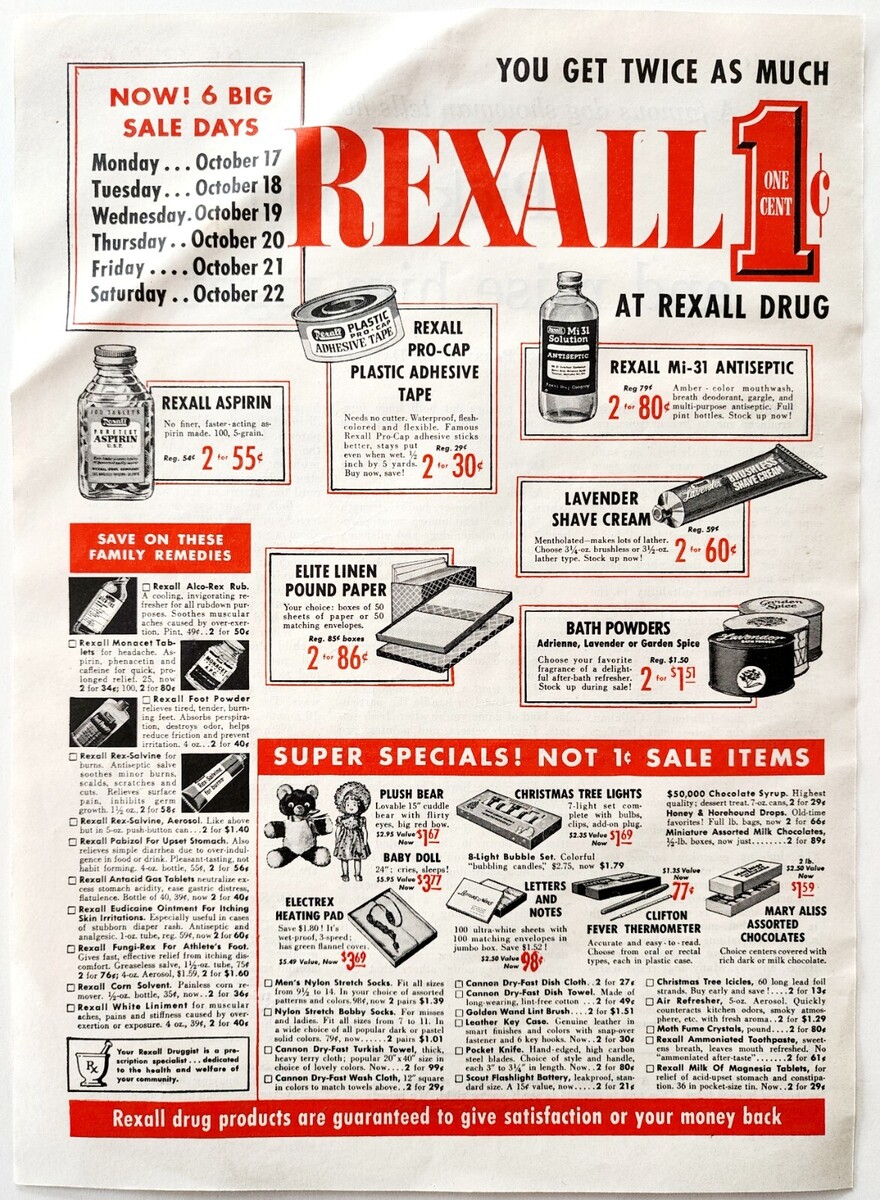 - 1955 Rexall Drug Pharmacy Stores Advertisement Vintage Medicine Sale DWF12