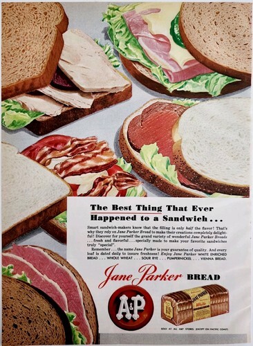 - 1956 A&P Jane Parker White Bread Loaf Advertisement Vintage Sandwiches DWPP24