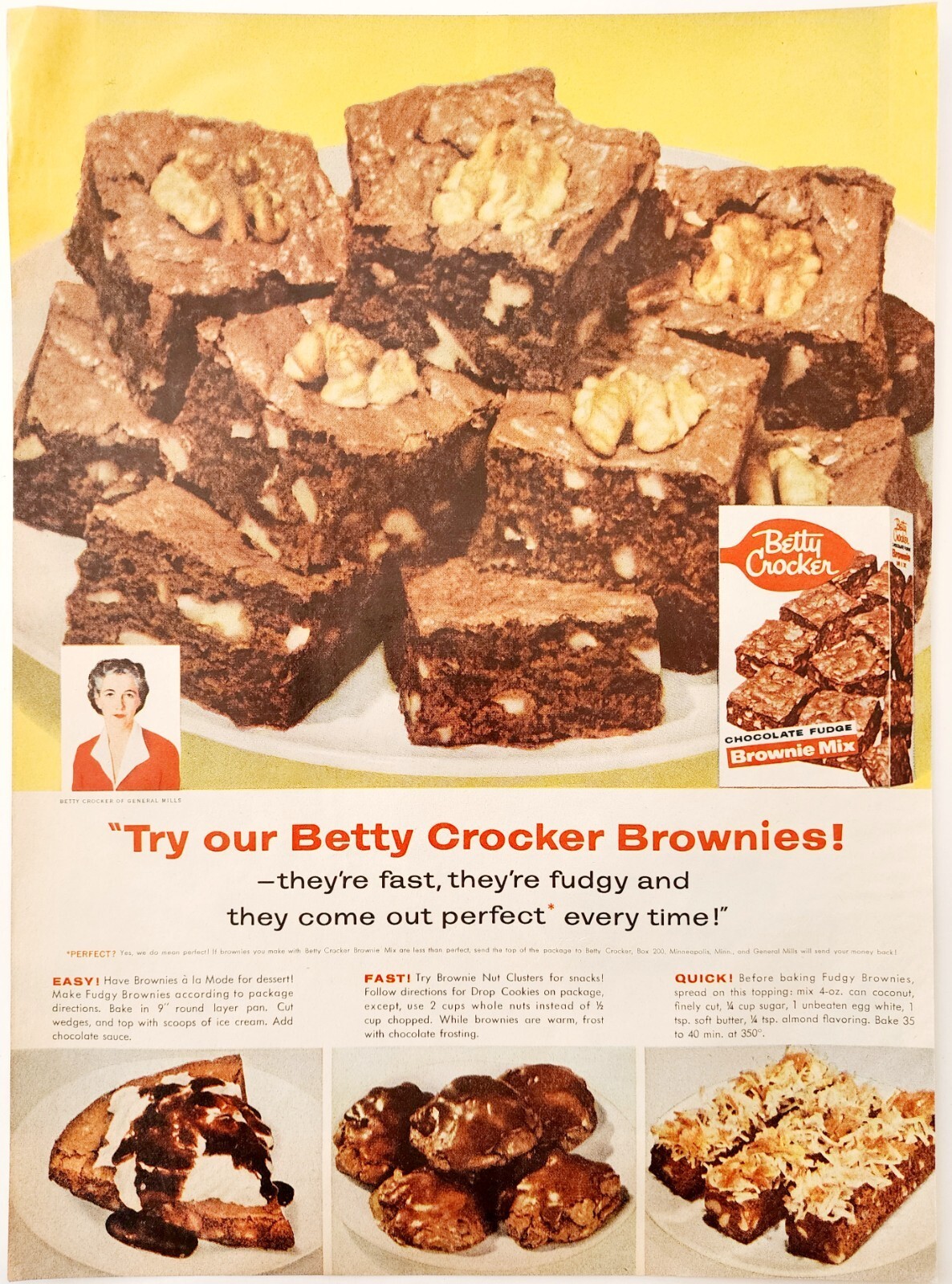 - 1956 Betty Crocker Brownie Mix Advertisement Chocolate Fudge Dessert DWJJ11